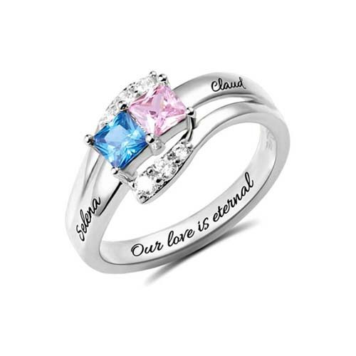 Découvrez cette magnifique bague prénom pierre de naissance personnalisée, un joli bijou original en argent massif 925. Une bague personnalisable avec votre prénom et le prénom d’un être cher à votre coeur, ainsi qu’un message sur mesure vous rappelant un moment magique à graver à jamais. Embelli de deux pierres de naissance à personnaliser, dont la couleur représente un mois symbolique à vos yeux. Un cadeau personnalisé et tendance qui vous accompagnera tout au long de votre vie.