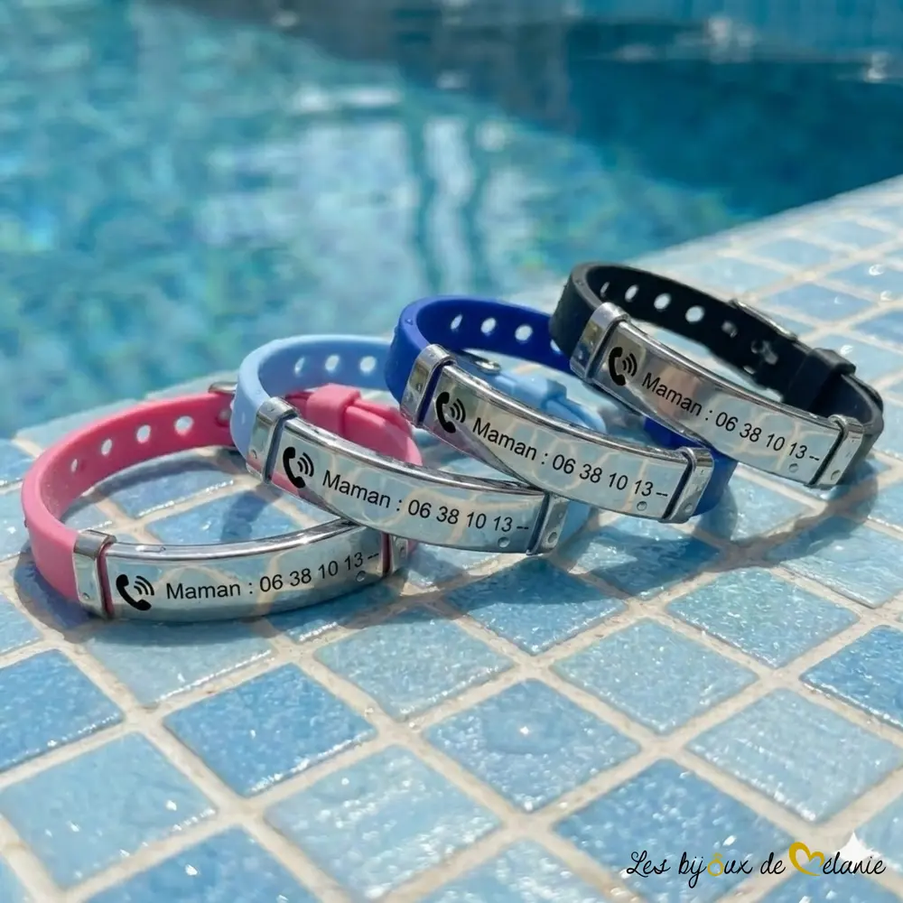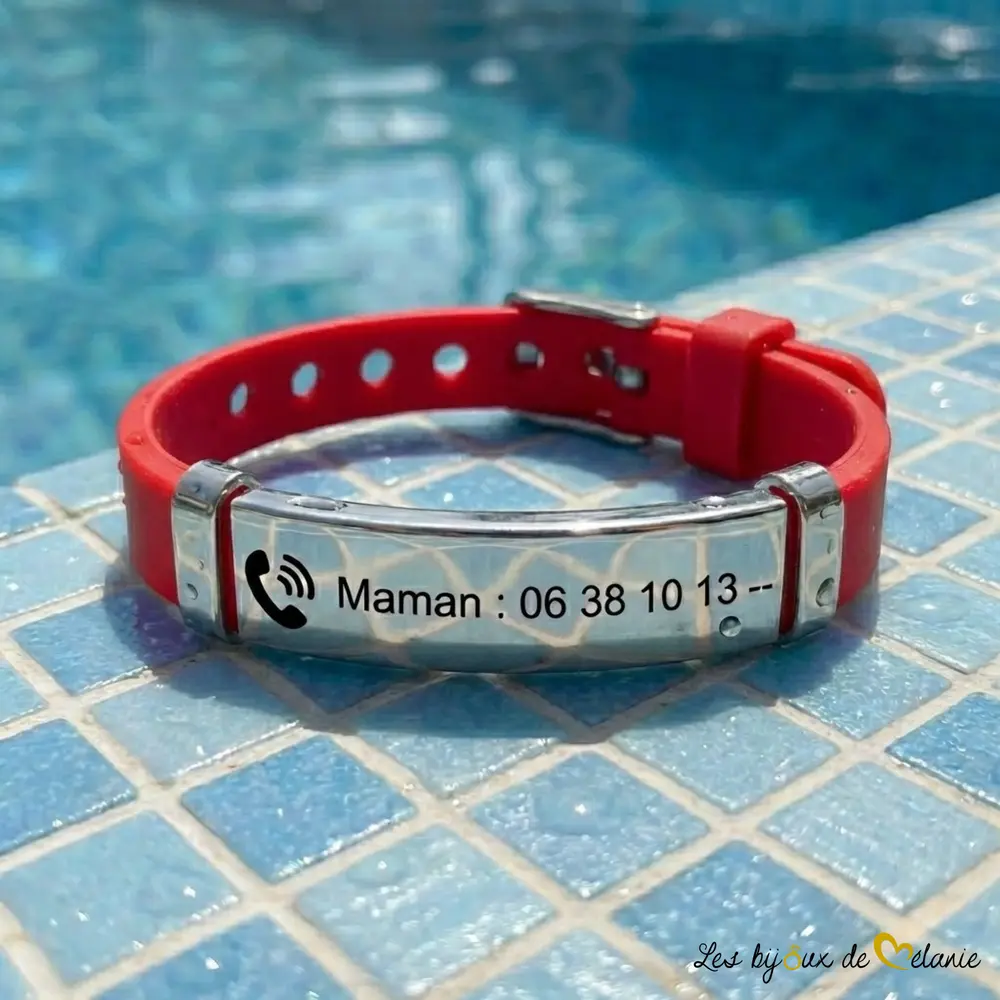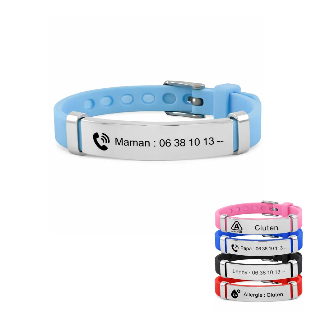 Protégez votre enfant en toutes circonstances ! Notre bracelet personnalisé en silicone souple est idéal au quotidien, pour les vacances, les sorties en famille ou les centres de loisirs. Gravé sur mesure, ce bracelet enfant personnalisé avec numéro de téléphone est l’accessoire idéal !
