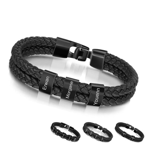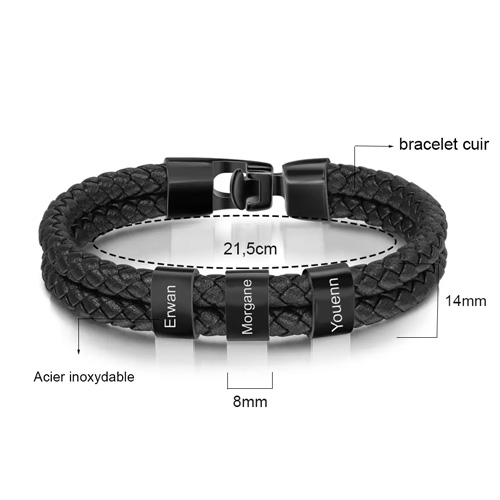 Faites graver les prénoms de ceux que vous aimez sur ce magnifique bracelet homme à graver. Pour un cadeau qui ne ressemble à aucun autre qu’on aura plaisir à porter toujours sur soi. Créez un bracelet unique à offrir en toute occasion. Laissez aller votre imagination afin d’élaborer un bijou unique à votre image ou celle de la personne à qui vous souhaitez l’offrir. Vous pouvez y ajouter jusqu’à cinq inscriptions de votre choix : un prénom, une date de naissance, un symbole, ou bien un petit mot personnel. C’est le cadeau parfait pour Noël, la Saint-Valentin, la fête des pères ou bien un anniversaire. Ce joli bracelet personnalisable pour homme saura créer la surprise. Un cadeau personnalisé reste un souvenir inoubliable qui touchera au le coeur de la personne à qui vous allez l’offrir.