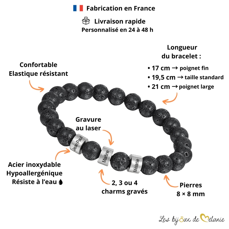 Bracelet en pierres de lave personnalisé créé par les Bijoux de Mélanie
