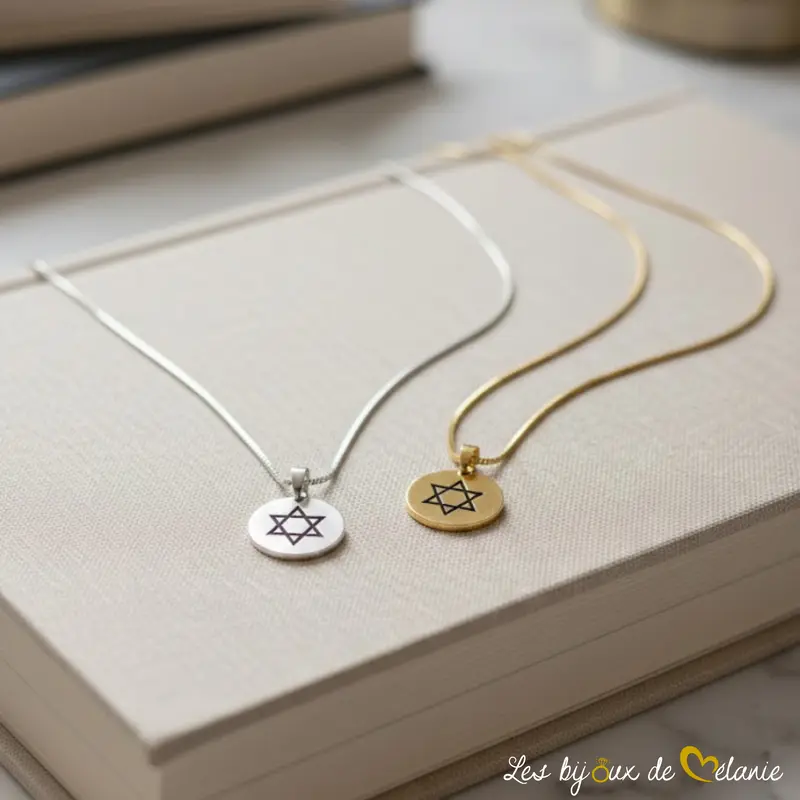 Pour conclure, ne prenez pas de risques avec vos souvenirs ou votre foi. Choisissez l’excellence et l’authenticité de notre atelier. Nous sommes prêts à graver votre médaillon étoile de David avec tout le soin qu’il mérite. Que ce soit pour vous ou pour offrir un cadeau juif symbolique, nous nous occupons de tout pour vous satisfaire.