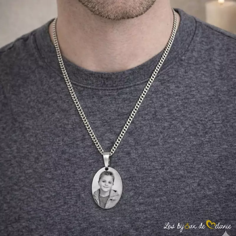- Le collier plaque avec photo pour homme